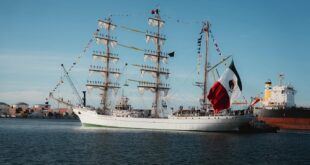Mérida, 10 de noviembre de 2025.- El Buque Escuela Velero ARM “Cuauhtémoc” (BE-01), insignia del …