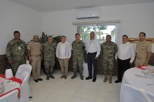 En la reunión también estuvieron presentes, el capitán Santiago Lara, del 11/o. Batallón de Infantería; el capitán de navío, Alejandro Peña Sobrevilla, Comandante de la Séptima Flotilla; el titular de la Capitanía de Puerto en Yucalpetén, Capitán de Fragata, José Alberto Solano Claustro; el Contralmirante, Jefe del Estado Mayor, José Humberto Peralta Cervera; Juan Concha García, enlace de la SEMAR con gobiernos; el Contralmirante, Víctor Fernández Carrasco, Director General de Asipona Progreso; el Capitán Medina Gamboa, de la Unidad de Protección Portuaria y; el Capitán de Navío, Juan Carlos González Blanco, Titular de la Aduana Marítima de Progreso.