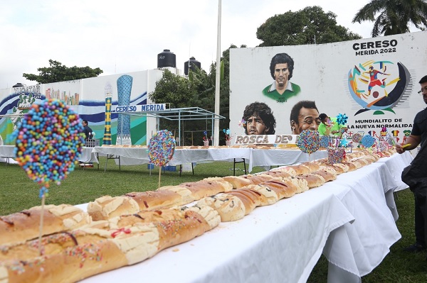 Mérida, enero 5, 2026.- Personas recluidas en el Centro de Reinserción Social (Cereso) de Mérida elaboraron una Rosca de Reyes de 250 metros, como parte de una actividad orientada a mantener vivas las tradiciones y propiciar la convivencia familiar en un entorno seguro al interior del centro.
