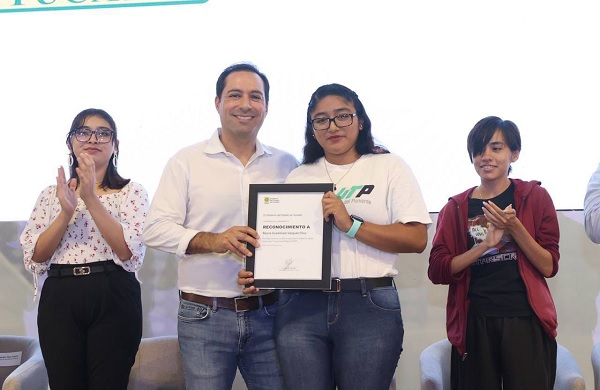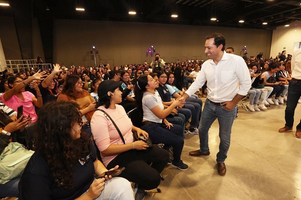 “Échenle muchas ganas, pues las condiciones ya están dadas. Tienen las oportunidades para aprender inglés, ser ingenieras, licenciadas, están estudiando las carreras del momento y, además, cuentan con un Gobierno que se está preocupando para que encuentren un buen trabajo en el futuro”, aseveró el Gobernador acompañado de las alumnas de la licenciatura de Diseño y Gestión de Redes Logística de la Universidad Tecnológica Metropolitana (UTM), Zaida Kanxoc Briceño y de la Carrera de Ingeniería en Animación Digital y Efectos Visuales del Instituto Tecnológico de Progreso, Mariana Esquivel Lugo.