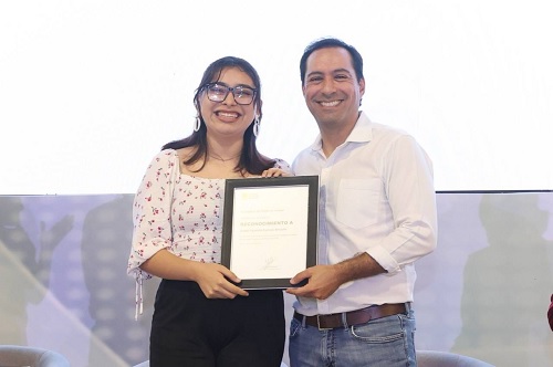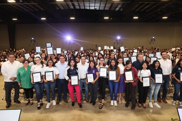 - Vila Dosal realizó la entrega de distintivos a 104 jóvenes con promedio destacado de universidades públicas del estado, que estudian gracias al apoyo de becas del 100% de inscripción y colegiaturas durante toda su carrera que otorga el Gobierno del Estado.