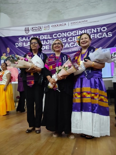 SemMéxico, Oaxaca, 23 de marzo, 2026.- Las científicas María Leticia Briseño Maas, Beatriz Hernández Carlos y Elia María del Carmen Méndez García fueron reconocidas e investidas como integrantes del Salón del Conocimiento de las Mujeres Científicas de Oaxaca.
