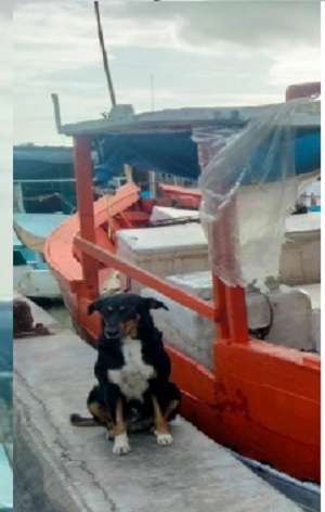 Los hombres de mar viajaban con su mascota el perrito a quien nombran “Metiche” que los acompaña en sus travesías en altamar y fue rescatado junto con ellos.