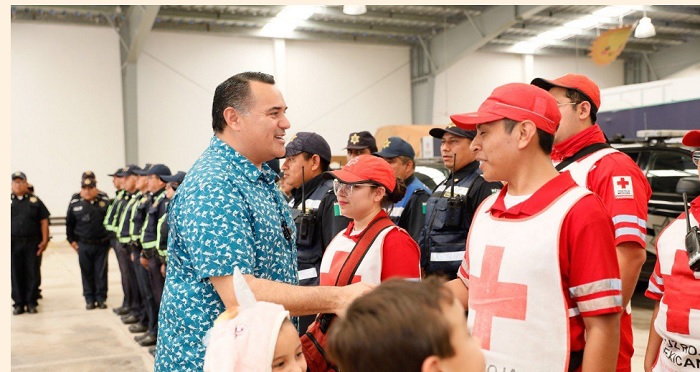 Acompañado del director de la Policía Municipal, Mario Arturo Romero Escalante, el Alcalde mencionó que gracias al apoyo de los más de 700 elementos, las familias y visitantes que vienen al Carnaval de Mérida pueden disfrutar de todas las actividades programadas con total tranquilidad.