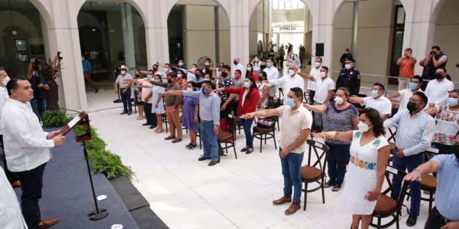 Mérida, Yucatán, 1 de diciembre de 2021.- Para promover el desarrollo integral en las 47 comisarías y subcomisarías del Municipio, el Alcalde, Renán Barrera Concha, exhortó a las nuevas autoridades auxiliares a trabajar en sinergia con el Ayuntamiento de Mérida, en donde ellos serán un elemento importante para escuchar, integrar y canalizar para su atención las necesidades prioritarias de las y los habitantes.