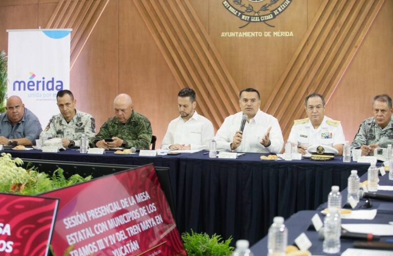Con el propósito de establecer los mecanismos de coordinación entre las autoridades de los tres órdenes de gobierno durante la operación del Tren Maya, el alcalde Renán Barrera Concha encabezó la Sesión Presencial de la Mesa Estatal con los Municipios de los Tramos III y IV del Tren Maya Yucatán.