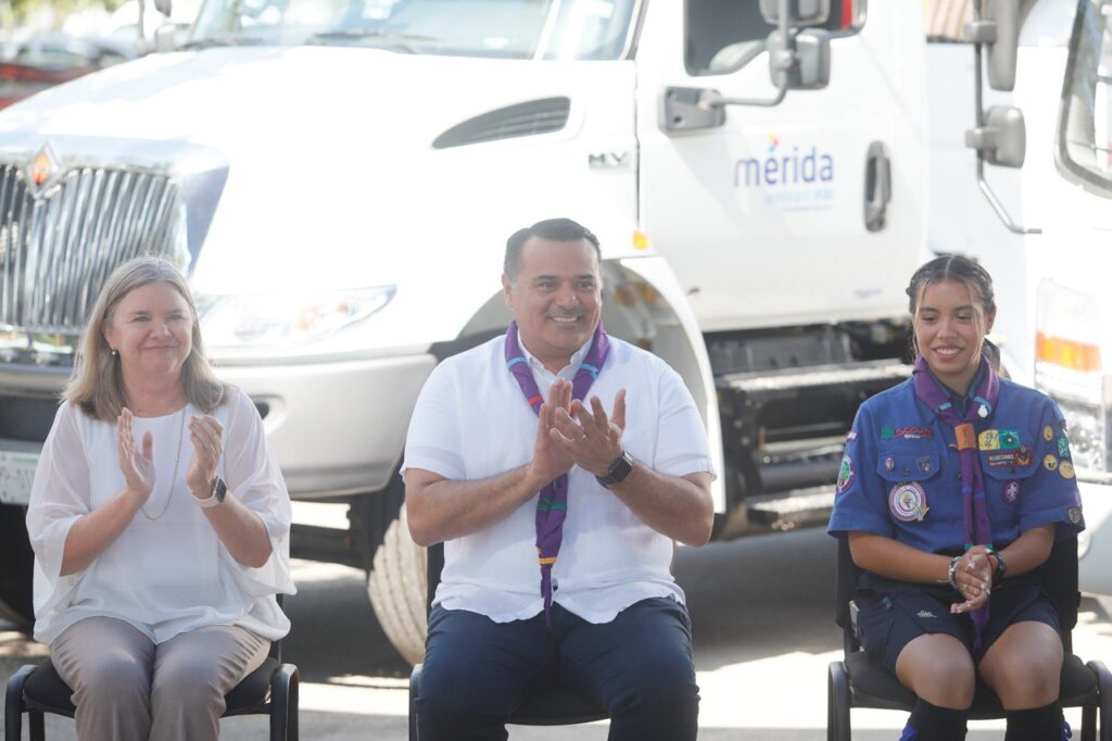 Acompañado de Ana Patricia Bates Paredes, Presidenta Municipal por un día, adscrita a la Provincia Yucatán de la Asociación de Scouts de México A.C., el Alcalde informó que se invirtieron 114 millones 306 mil 717.28 pesos para la adquisición de estos vehículos, lo cual se realizó a través de un arrendamiento a 24 meses, que iniciará de septiembre de 2022 a agosto de 2024.
