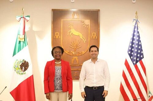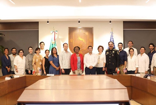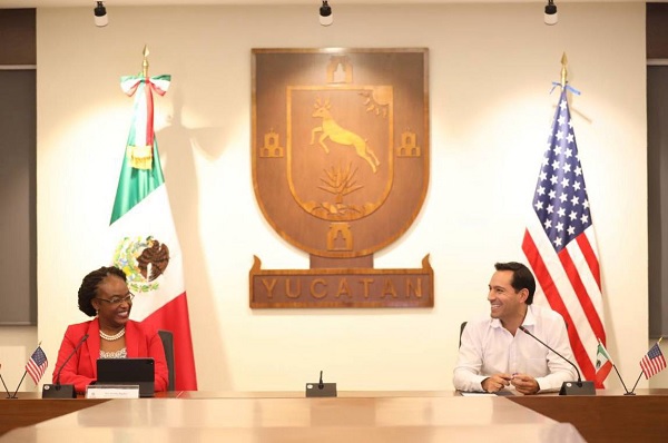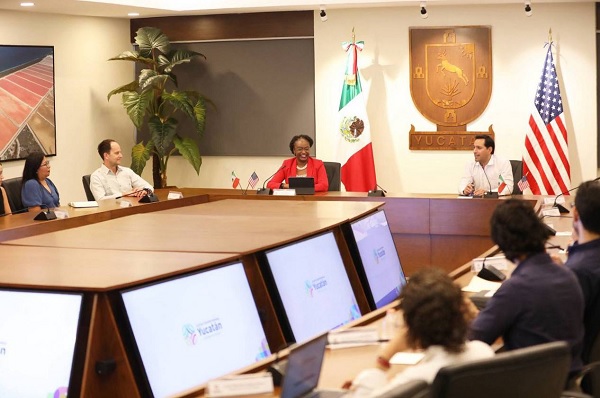 En el encuentro, donde también participaron el jefe de la Sección Consular, Jacob Grannell, y titulares de dependencias del Gobierno estatal, Vila Dosal y la diplomática hablaron sobre las acciones que se han realizado en equipo con el Consulado estadounidense los últimos 3 años para procurar el desarrollo de Yucatán.