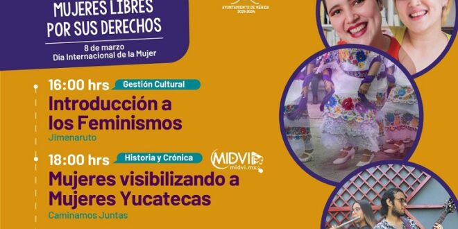 El martes 8 de marzo y desde la fanpage de Mérida es Cultura habrá tres transmisiones gratuitas sobre los feminismos y las aportaciones de mujeres en diferentes ámbitos. La programación digital inicia a las 4 de la tarde con una charla de gestión cultural de “Introducción a los feminismos”, propuesta de Jimenaruto en la que se explican ideas y conceptos básicos que los feminismos han puesto en el imaginario social y de los que muchas veces no conoce su verdadero significado ni su origen, así como crear un árbol genealógico de las diversas corrientes del feminismo que pueda evidenciar los cambios que ha tenido tanto por contacto con otros movimientos sociales, como por la autocrítica dentro del mismo movimiento.
