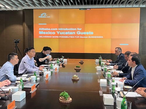 Hangzhou, China, 20 de julio de 2023.- Como parte de la misión comercial que realiza por China, el Gobernador Mauricio Vila Dosal se reunió con directivos de la importante firma china de comercio electrónico, Alibaba, para establecer lazos de colaboración y seguir promoviendo la incursión de cada vez más empresas yucatecas a esta plataforma, así como explorar las áreas de oportunidad en temas como turismo y agricultura, a fin de que Yucatán adquiera mayor presencia en el mercado del país asiático y esto se traduzca en más empleos y mejor pagados.