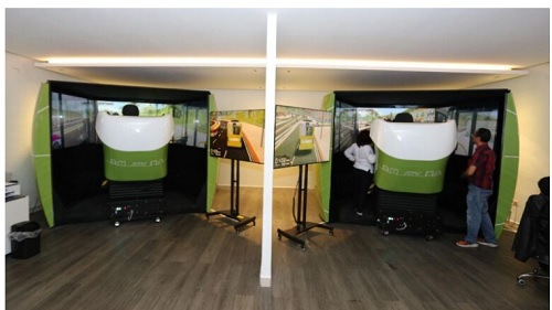 En este espacio, se cuentan con dos simuladores de alta tecnología que componen escenarios de realidad virtual donde se evalúa la seguridad y la eficiencia al volante poniendo a prueba a los conductores en escenarios de riesgo como tormentas, cruces intempestivos de animales, obstáculos, convivencia con ciclistas, así como el respeto del reglamento vial; además de que cuentan con los mejores componentes tecnológicos para lograr un efecto con características urbanas lo más parecido a la realidad.