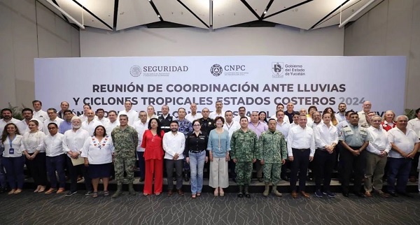 Mérida, Yucatán, 27 de mayo de 2024.-Con un llamado a los yucatecos a tomar todas las medidas preventivas ante cualquier emergencia, la encargada del Despacho del Gobernador, María Fritz Sierra encabezó la Reunión de coordinación ante lluvias y ciclones tropicales estados costeros 2024 e instaló la Sesión Ordinaria del Consejo Estatal de Protección Civil, con lo que Yucatán se declara listo para la temporada de huracanes 2024 que inicia este sábado 1 de junio en el Atlántico y el Caribe.