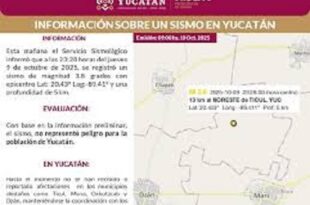 Leer Mas ...Sismo leve de magnitud 3.8 sorprende al noreste de Ticul
