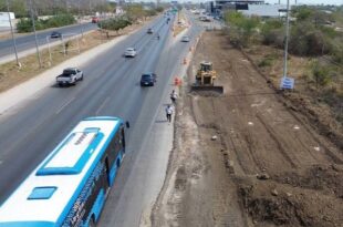 El Gobierno estatal construye 9.3 kilómetros de calles laterales de esa importante arteria, de los …