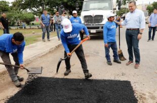 El Alcalde Alejandro Ruz Castro supervisa los trabajos de repavimentación en la colonia Emiliano Zapata …