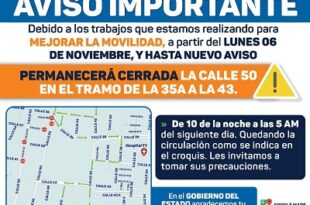 Debido a las obras, a partir del lunes 6 de noviembre permanecerá cerrado al tránsito …