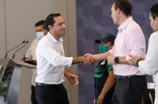 El Gobernador Mauricio Vila Dosal y el presidente ejecutivo de la Liga Mexicana de Béisbol …