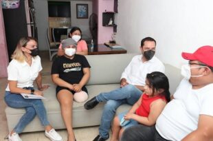 Merary Jaqueline González Cauich y Josep Euán Dzul recibieron al Gobernador, quien les entregó ayuda …