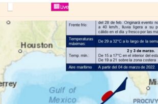 Que Las temperaturas mínimas serán de 15 a 17 grados al interior del territorio y …