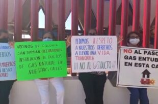 Con pancartas y cartulinas, vecinos de la colonia San Damián exigieron alas autoridades resolver sobre …
