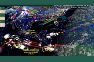 Mérida, Yucatán, 2 de noviembre de 2021. – En las próximas 24 horas, se prevé …