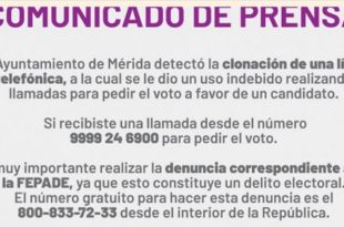El Ayuntamiento de Mérida detectó la clonación de una línea telefónica del municipio, a la …